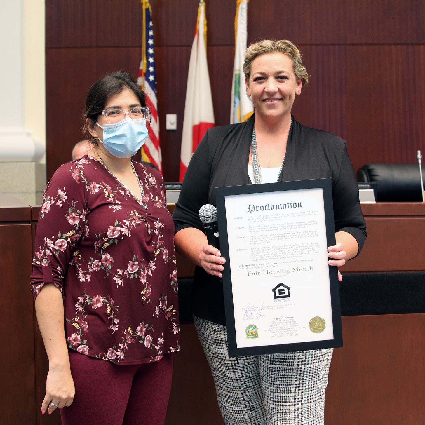 At the April Special Council Presentation Ceremony, Councilwoman Jenifer Bailey presented a proclamation to celebrate the 54th anniversary of the passage of the Fair Housing Act and declare April 2022 as Fair Housing Month. This act established a national policy that prohibits discrimination based on race, color, creed, religion, sex, handicap, familial status, and natural origin. The City of Homestead along with the United States Department of Housing and Urban Development are working together to realize the dream of fair and affordable housing for all residents. The City of Homestead is committed to addressing the discrimination in the Homestead community and support programs that will educate the public about the right to equal housing opportunities and plan partnership efforts with other organizations to ensure the right to fair housing.